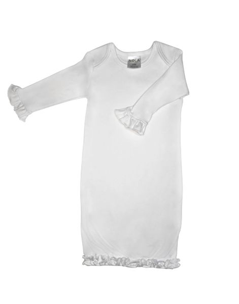The material is nice and thick with a soft cotton feel but not see through or thin. Gown. The Long Sleeve Raglan Ruffle Baby Gown is comfortable breathable and durable for longer use and multiple wears. Stripe Gown with Picot Trim. Blank Unisex Long Sleeve Infant Gown with Hidden Zipper. Clearance Four Piece Baby Girls Layette Set -. This comes in bright white.